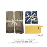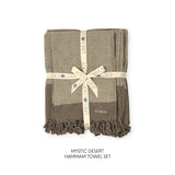 Hammam Towel Set - Mystic Desert: Crafted with premium cotton, this versatile Hammam Towel Set is lightweight, quick drying and ages beautifully. The set comprises one Bath Towel, two Face Towels, and two Hand Towels.