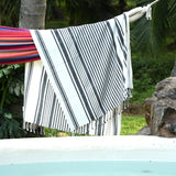 From the Hammams of Turkey and now on a global comeback trail, these Hammam Towels with our unique and modern designs are a must have. Also known as Peshtemal or Fouta, they are made with premium cotton and finished with a classic hand knotted fringe detail. Highly versatile, they are simply the best travel companions. Use it as a beach towel, beach blanket, beach wrap, at the pool, as a table cloth or a throw or wherever your imagination leads you.