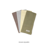 Muslin Squares: An ultimate all-in-one solution for moms, serving as baby wipes, washcloths, burp cloths, bib, nappy changing surface pad and more. Moms can later reuse these for night time face cleansing/ exfoliating and to wipe away makeup.