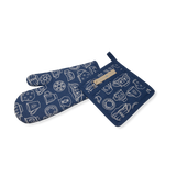 Oven Mitt & Pot Holder Set - Cup & Saucer - Navy