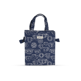 Tall Acrylic Coated Lunch Bag with Zip - Cup & Saucer - Navy