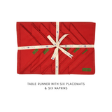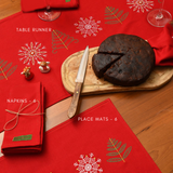 Holiday get togethers and large family dinners will be even more livelier with this elegant Xmas themed Premium Dinining set. This beautiful dining set includes one Tablerunner, six place mats and six napkins. It comes packed as a gift set and transforms a dining area.