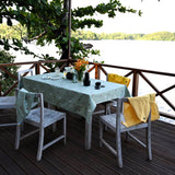 Here's our answer to your woes. A cotton table cloth with an acrylic coating which is spill proof and can be wiped clean.