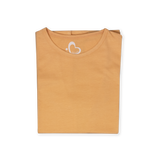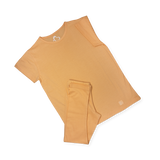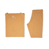 A Swedish designed homefashion set in bold orange. A unisex set suitable as night wear or as a relaxed, stylish home wear. The T-shirt is loose fit for an oversized look. Made of GOTS certified organic cotton jersey and tested for harmful chemicals. A toxin-free wear that contributes to a better planet for our children to grow up in.