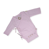 A Swedish designed babysuit in a pink pastel. The suit has long sleeves, that can be folded into gloves to prevent scratching or to give the tiny hands some extra warmth. Made of GOTS certified organic cotton jersey and tested for harmful chemicals. A toxin-free starting suit for your precious newborn that contributes to a better planet for our children to grow up in.