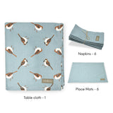 Dining Set - Sparrows - Cameo Blue - Acrylic Coated Table Cloth, 6 Place mats (Solid), Napkins (Set of 6)