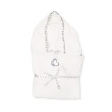 A Swedish designed poncho towel, that ensures absorbance after bath time. Bordered with the Me Raindrop print. Made of GOTS certified organic terry and has been tested for harmful chemicals according to Oeko-Tex.